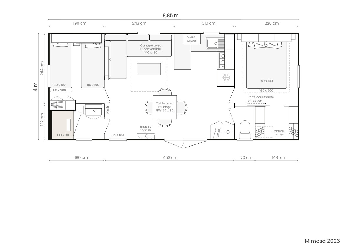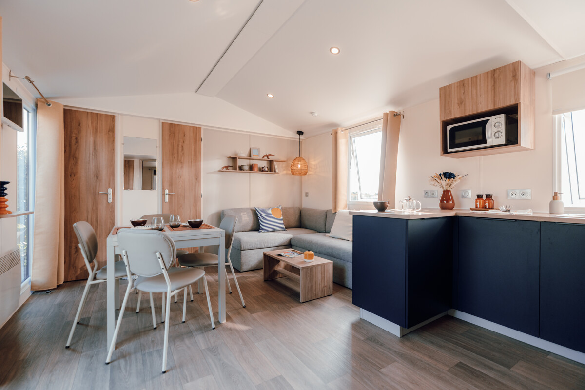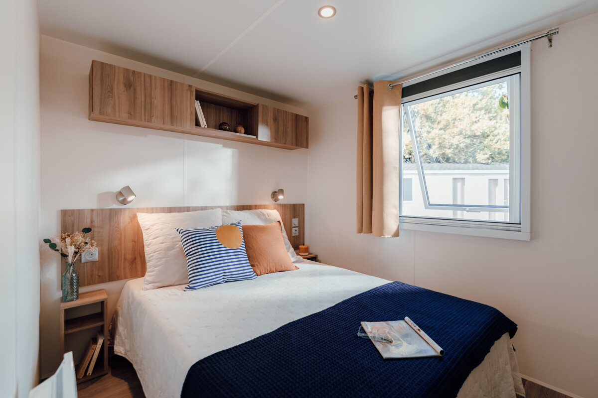 Mobil-home confortable et accueillant, idéal pour profiter de moments de détente en famille ou entre amis. Il dispose de deux chambres douces et reposantes, parfaites pour préserver l’intimité de chacun.
