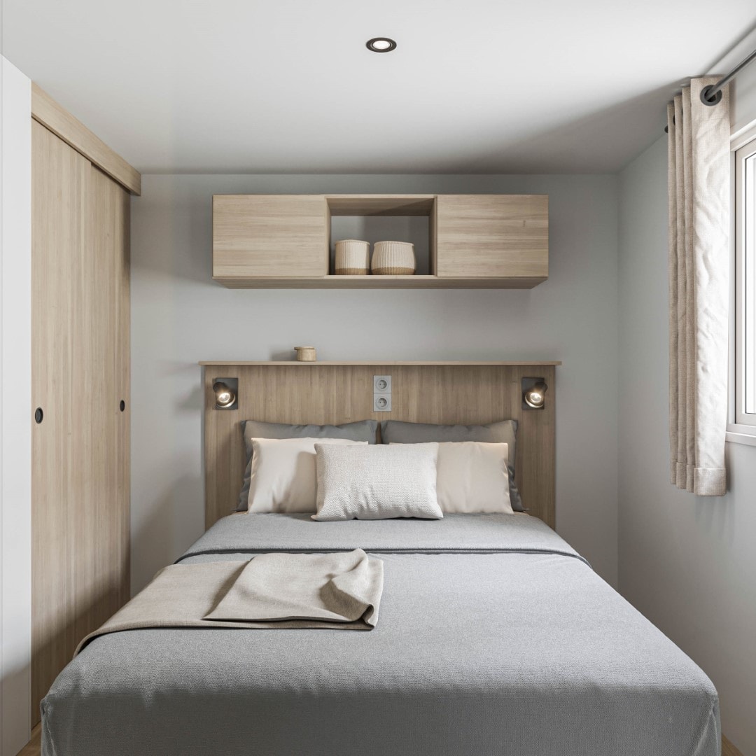 Ce mobil-home spacieux et confortable dispose de trois chambres séparées et d’une salle de bain fonctionnelle, offrant tout l’espace nécessaire pour accueillir famille ou amis. Le salon lumineux et convivial est idéal pour se détendre, tandis que la cuisine ouverte est parfaitement équipée pour préparer vos repas facilement.